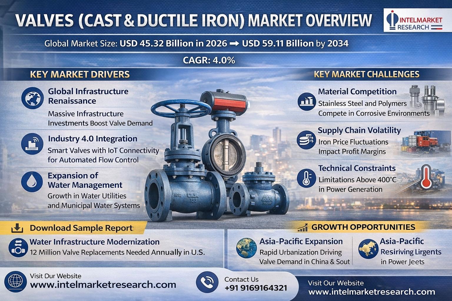According to a new report from Intel Market Research, Global Valves (Cast & Ductile Iron) market was valued at USD 45.32 billion in 2025 and is projected to reach USD 59.11 billion by 2034, growing at a steady CAGR of 4.0% during the forecast period (2026–2034). This growth is driven by increasing infrastructure investments, industrial automation trends, and the expansion of water management systems across emerging economies.