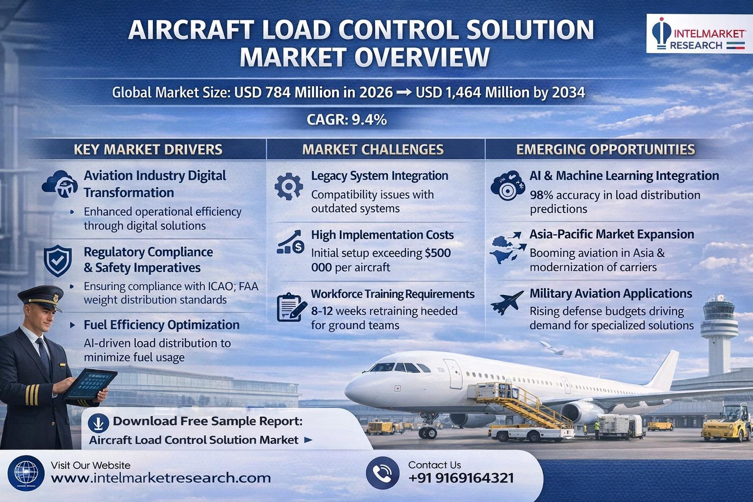 According to a new report from Intel Market Research, Global Aircraft Load Control Solution market was valued at USD 784 million in 2026 and is projected to reach USD 1,464 million by 2034, growing at a robust CAGR of 9.4% during the forecast period (2026–2034). This growth is propelled by increasing air traffic, fleet expansion, and the aviation industry's digital transformation initiatives.