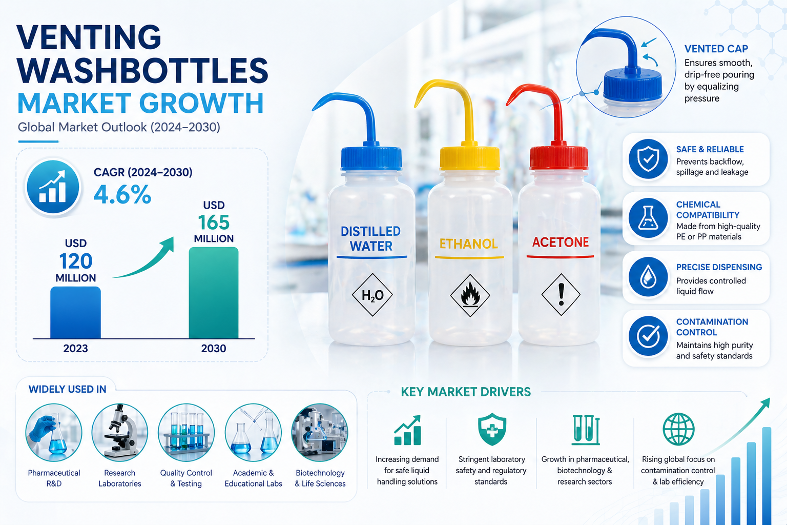 According to a newly published market research report by 24LifeSciences, the global venting washbottles market was valued at USD 120 million in 2023 and is projected to reach USD 165 million by 2030, growing at a compound annual growth rate (CAGR) of 4.6% during the forecast period 20242030.