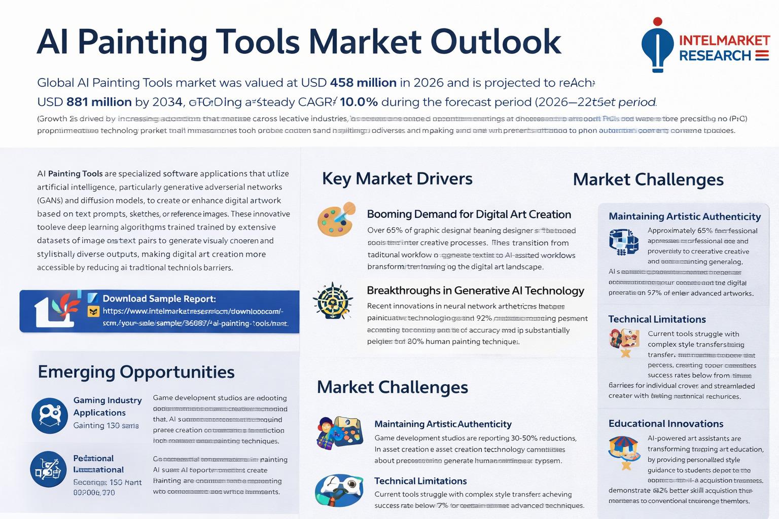 According to a new report from Intel Market Research, Global AI Painting Tools market was valued at USD 458 million in 2025 and is projected to reach USD 881 million by 2034, growing at a steady CAGR of 10.0% during the forecast period (2026–2034). This growth is fueled by increasing adoption across creative industries, rapid advancements in generative AI technology, and growing demand for automated content creation solutions.