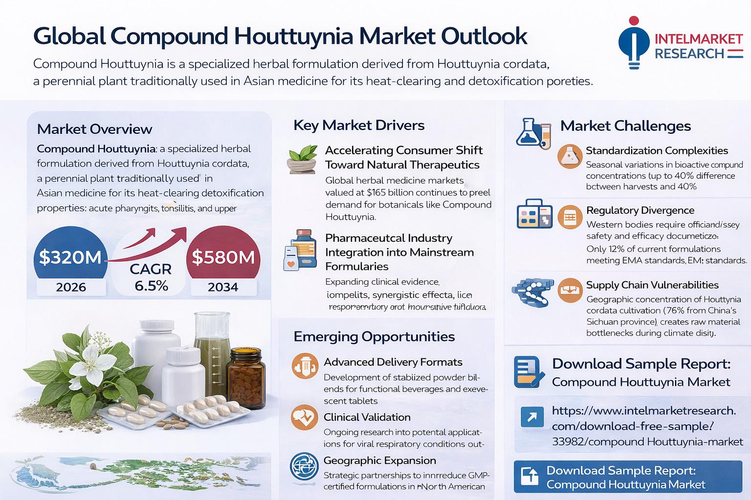 According to a new report from Intel Market Research, Global Compound Houttuynia market was valued at USD 320 million in 2025 and is projected to reach USD 580 million by 2034, growing at a steady CAGR of 6.5% during the forecast period (2026–2034). This growth trajectory reflects increasing global demand for traditional herbal medicines, particularly those with clinically validated efficacy in respiratory and inflammatory conditions.