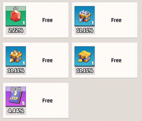 • One item becomes available for free—make sure to claim it before hitting refresh.