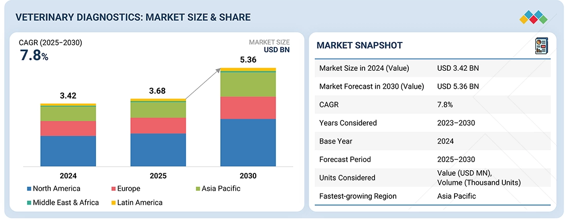 The numbers surrounding the veterinary diagnostics market tell a compelling story of steady and sustainable growth. According to current projections, the market is expected to expand from USD 3.68 billion in 2025 to USD 5.36 billion by 2030, registering a compound annual growth rate (CAGR) of 7.8%. That’s not just incremental growth—it reflects a robust upward trajectory fueled by multiple converging factors.