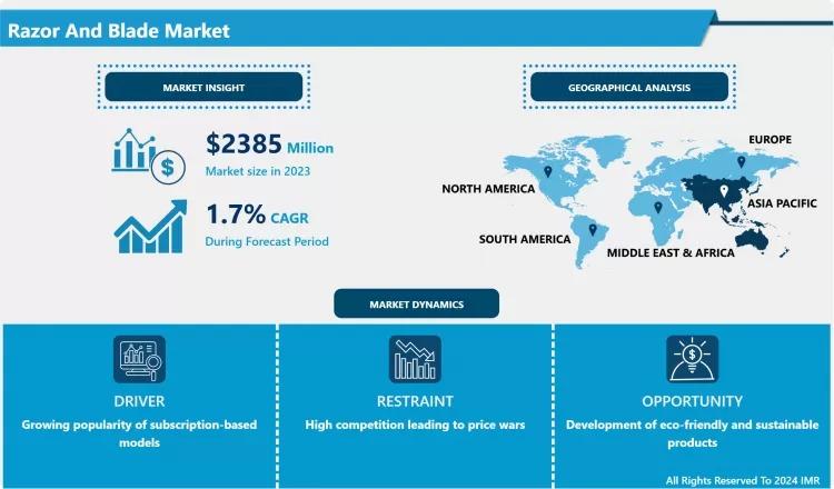 According to a new report published by Introspective Market Research, Razor And Blade Market by Type, Distribution Channel, and End User, The Global Razor And Blade Market Size Was Valued at USD 2385.00 Million in 2023 and is Projected to Reach USD 2775.73 Million by 2032, Growing at a CAGR of 1.70%.