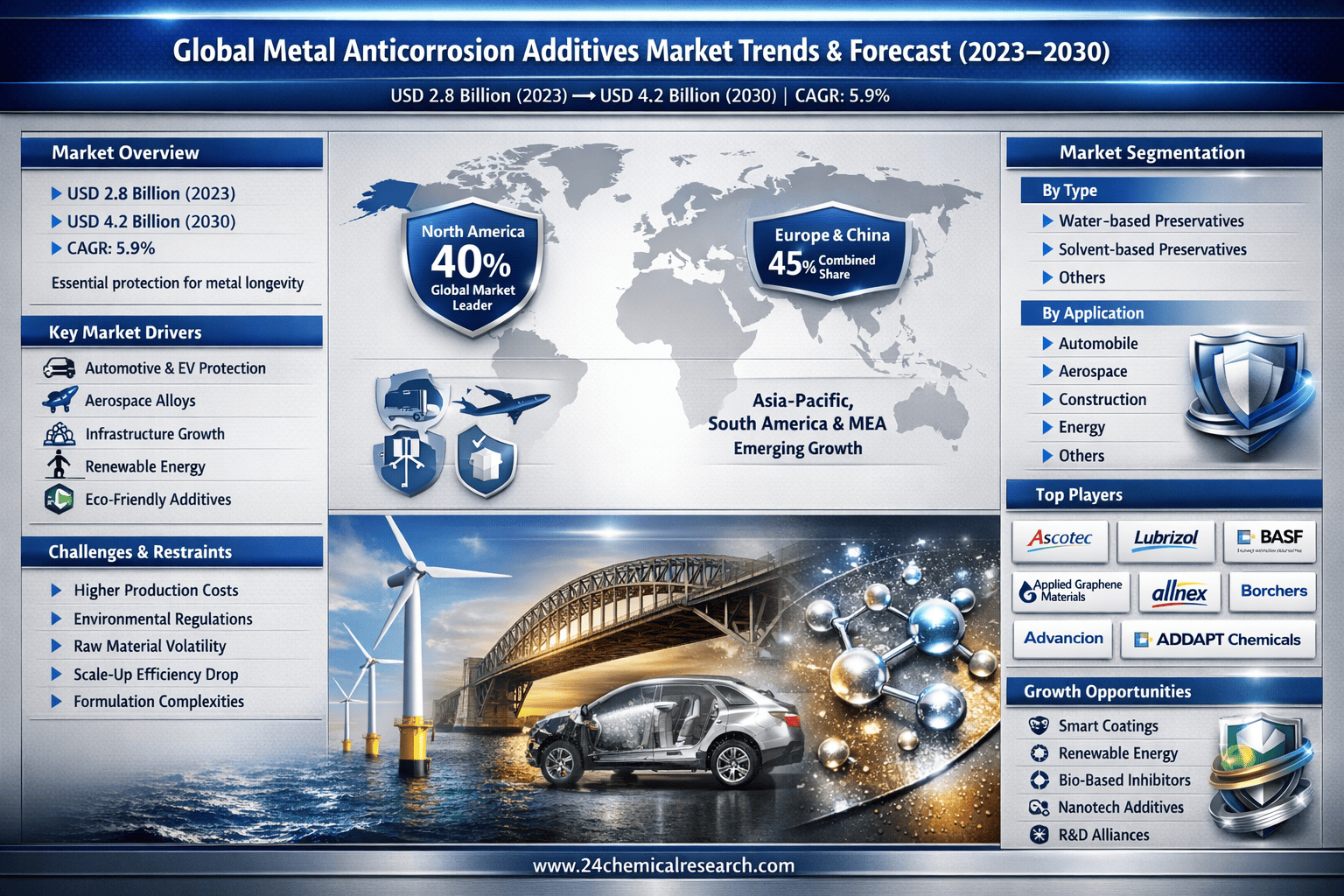 The end-user landscape includes Automobile, Aerospace, Construction, Energy, and Others. The Automobile industry accounts for the major share, leveraging additives for enhanced durability in harsh road conditions and body panels. The Energy and Aerospace sectors are rapidly emerging as key growth end-users, reflecting trends in offshore installations and lightweight aircraft designs that demand superior corrosion mitigation.