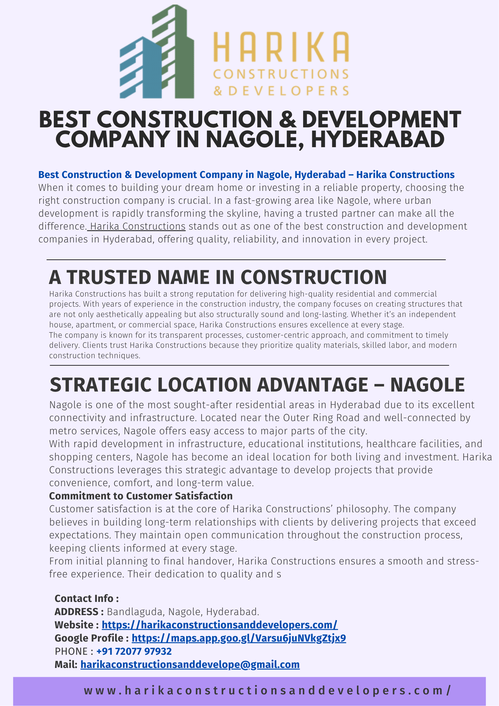 - Best Construction & Development Company in Nagole, HyderabadBest Construction & Development Company in Nagole, Hyderabad – Harika Constructions & Developers When it comes to building your dream home or investing in a reliable property, choosing the right construction company is crucial. In a fast-growing area like Nagole, where urban development is rapidly transforming the skyline, having a trusted partner can make all the difference....0 Kommentare 0 Anteile 260 AnsichtenPlease log in to like, share and comment!