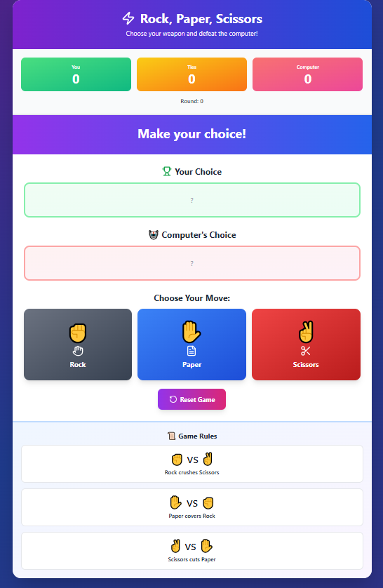 Step into the classic battle of wits! This fun and fast-paced game lets you challenge the computer (or your friends) in the timeless showdown — Rock beats Scissors, Scissors cut Paper, and Paper covers Rock! Test your luck, sharpen your reflexes, and see who comes out on top!