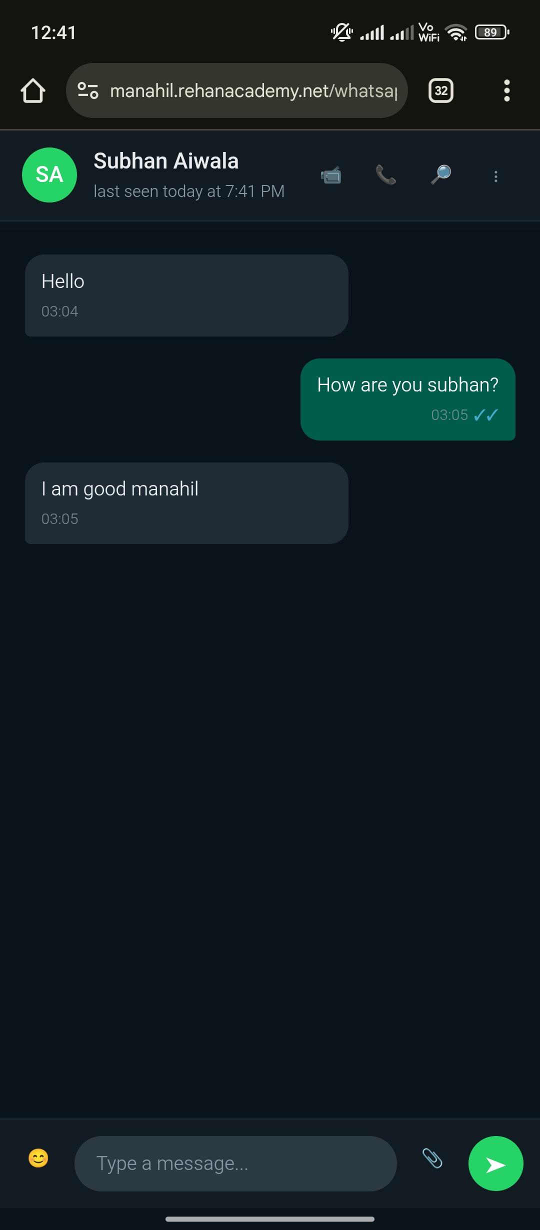 Just completed my WhatsApp Clone! Real-time messaging is now live. Clone Link: https://manahil.rehanacademy.net/whatsapp-functional/login.php GitHub Repository: https://github.com/manahilibrahim/Functional-whatsapp #rehancodingwithai #codingwithai #WebDevelopment #WhatsAppClone