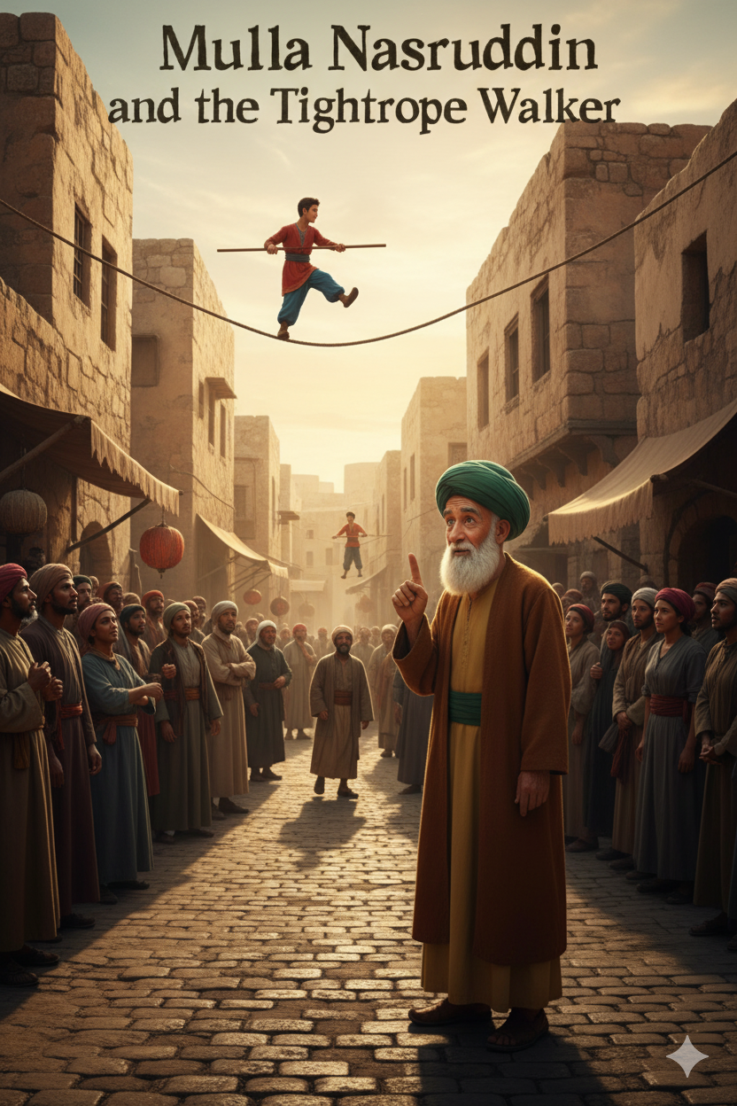 Mulla Nasruddin replied, "If you cannot pass through this door, then it’s not the door, but your thinking that is narrow."مولا نصرالدین اور تنگ دروازے پر چلنے والا مولا نصرالدین ایک دن تنگ دروازے کے سامنے کھڑے تھے۔ ایک شخص آیا اور بولا، "یہ دروازہ تو بہت تنگ ہے، آپ کیسے اس سے گزر پائیں گے؟" مولا نصرالدین نے جواب دیا، "اگر تم اس دروازے سے نہیں گزر سکتے، تو پھر دروازہ ہی کیا، انسان کی سوچ ہی تنگ ہے۔" Mulla Nasruddin and the Tightrope Walker One day, Mulla Nasruddin stood in front of a narrow door. A person came and said, "This door is very narrow, how will you pass through it?" Mulla Nasruddin replied, "If you cannot pass through this door, then it’s not the door, but your thinking that is narrow."0 التعليقات 0 المشاركات 112 مشاهدةالرجاء تسجيل الدخول , للأعجاب والمشاركة والتعليق على هذا! - مولا نصرالدین کی گمشدہ انگوٹھی