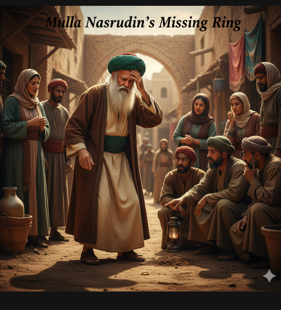 مولا نصرالدین ایک دن اپنی انگوٹھی تلاش کر رہے تھے، لیکن وہ کہیں نہیں مل رہی تھی۔ جب لوگوں نے پوچھا، تو مولا نصرالدین نے کہا، "یہ انگوٹھی گم نہیں ہوئی، بلکہ وہ مجھے گم کر کے جا چکی ہے۔"