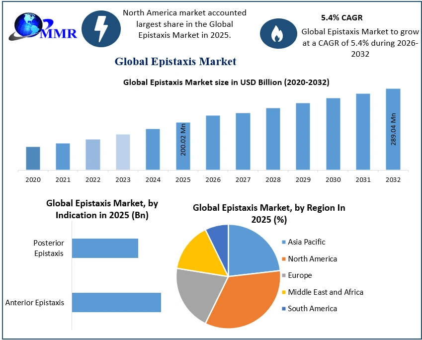 The global Epistaxis Market, valued at USD 200.02 million in 2025, is projected to grow steadily at a CAGR of 5.4% from 2025 to 2032, reaching nearly USD 289.04 million by 2032. Epistaxis, commonly referred to as nosebleed, is characterized by acute hemorrhage from the nostril, nasal cavity, or nasopharynx. It remains one of the most frequent otolaryngological emergencies worldwide, affecting both pediatric and geriatric populations.
