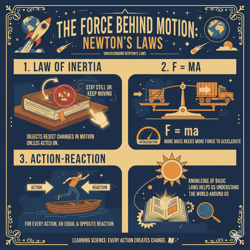 Knowledge of basic laws helps us understand the world around us. Just like Newton discovered the rules behind motion, learning science teaches us that every action has a consequence and every force creates change.