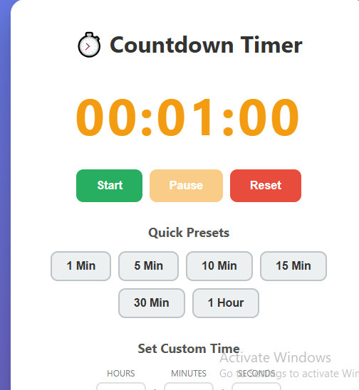 A countdown timer is a simple yet powerful tool to help you manage time effectively. It keeps you aware of every passing second, builds focus, and creates urgency to complete tasks on time. Whether you’re studying, working, exercising, cooking, or counting down to a special event, a countdown timer keeps you disciplined and motivated. Turn every deadline into a challenge and make the most of your time.