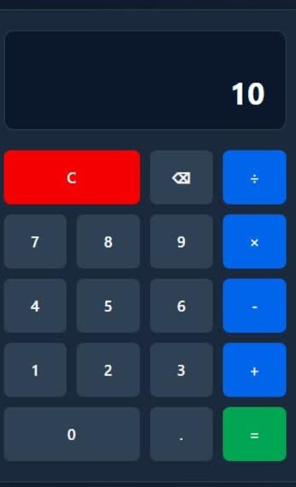 Ayan Ibrahim Tedxwalacoding task no 1 foundation level student at RSMC 🔢 Basic Calculator 🧮 A simple calculator that performs basic arithmetic operations: ➕ Addition ➖ Subtraction ✖️ Multiplication ➗ Division Perfect for quick math calculations with a clean and easy-to-use interface! 💡✅ Rubab EducationWali Ayan Ibrahim Tedxwala0 Comments 0 Shares 129 Views - Canva post no9 foundation level student at RCMCCanva post no9 foundation level student at RCMC0 Comments 0 Shares 123 Views