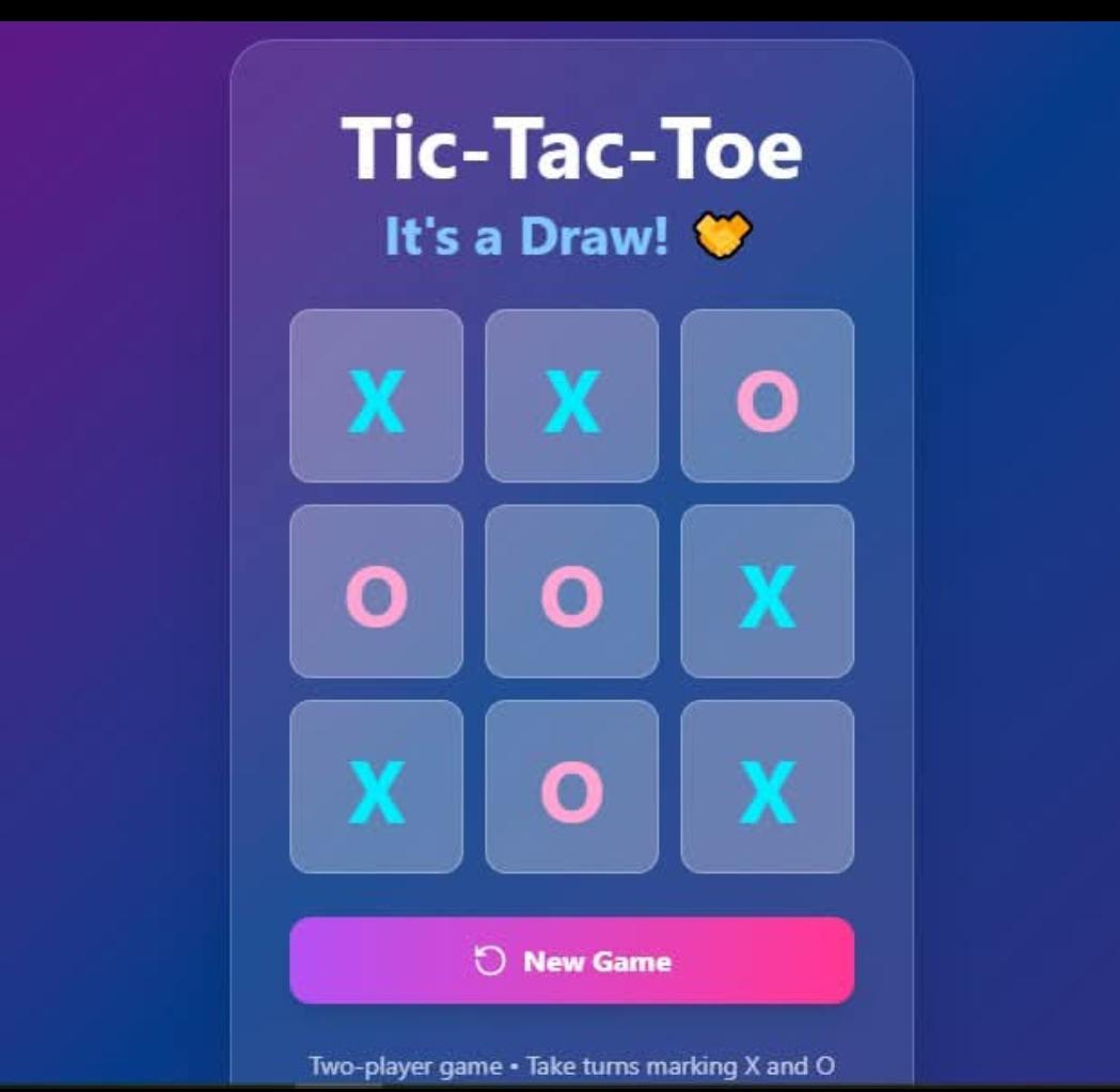 The game checks for a winner after each move and announces the result — either a win or a tie!